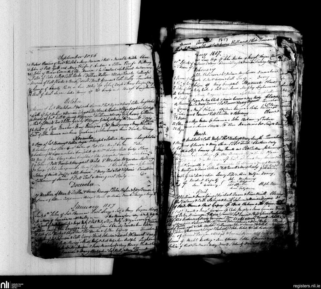Clane; County of Kildare; Diocese of Kildare and Leighlin. Baptisms, Sep. 1856 to Apr. 1857
