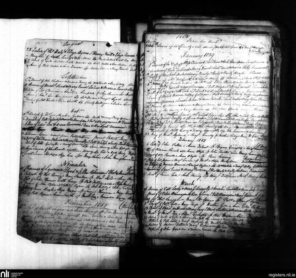Clane; County of Kildare; Diocese of Kildare and Leighlin. Baptisms, Aug. 1858 to Mar. 1859