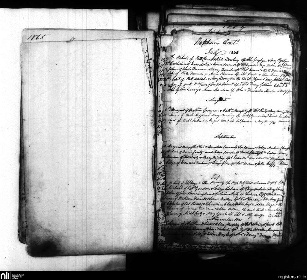 Clane; County of Kildare; Diocese of Kildare and Leighlin. Baptisms, July 1865 to Nov. 1865