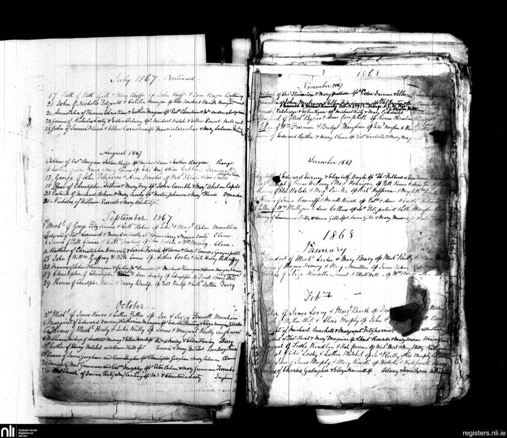 Clane; County of Kildare; Diocese of Kildare and Leighlin. Baptisms, July 1867 to Feb. 1868