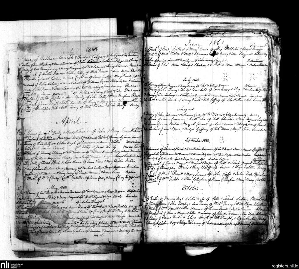 Clane; County of Kildare; Diocese of Kildare and Leighlin. Baptisms, Mar. 1868 to Oct. 1868