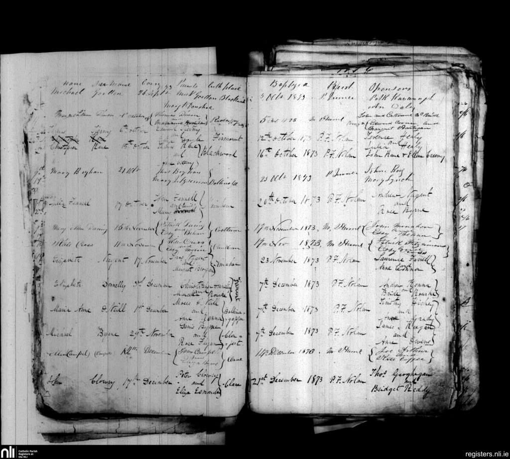 Clane; County of Kildare; Diocese of Kildare and Leighlin. Baptisms, Sep. 1873 to Dec. 1873