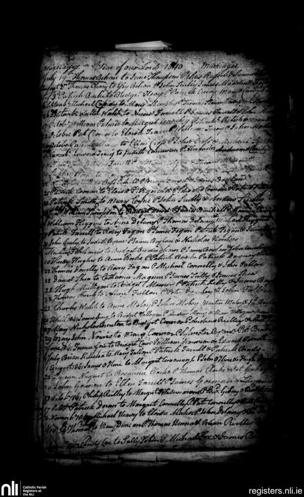 Clane; County of Kildare; Diocese of Kildare and Leighlin. Marriages, July 1840 to Nov. 1841