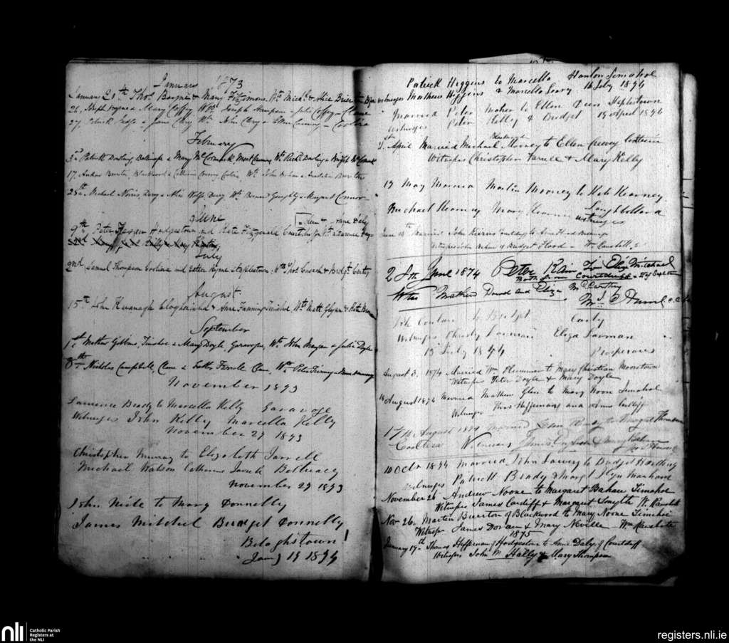 Clane; County of Kildare; Diocese of Kildare and Leighlin. Marriages, Jan. 1873 to Jan. 1875