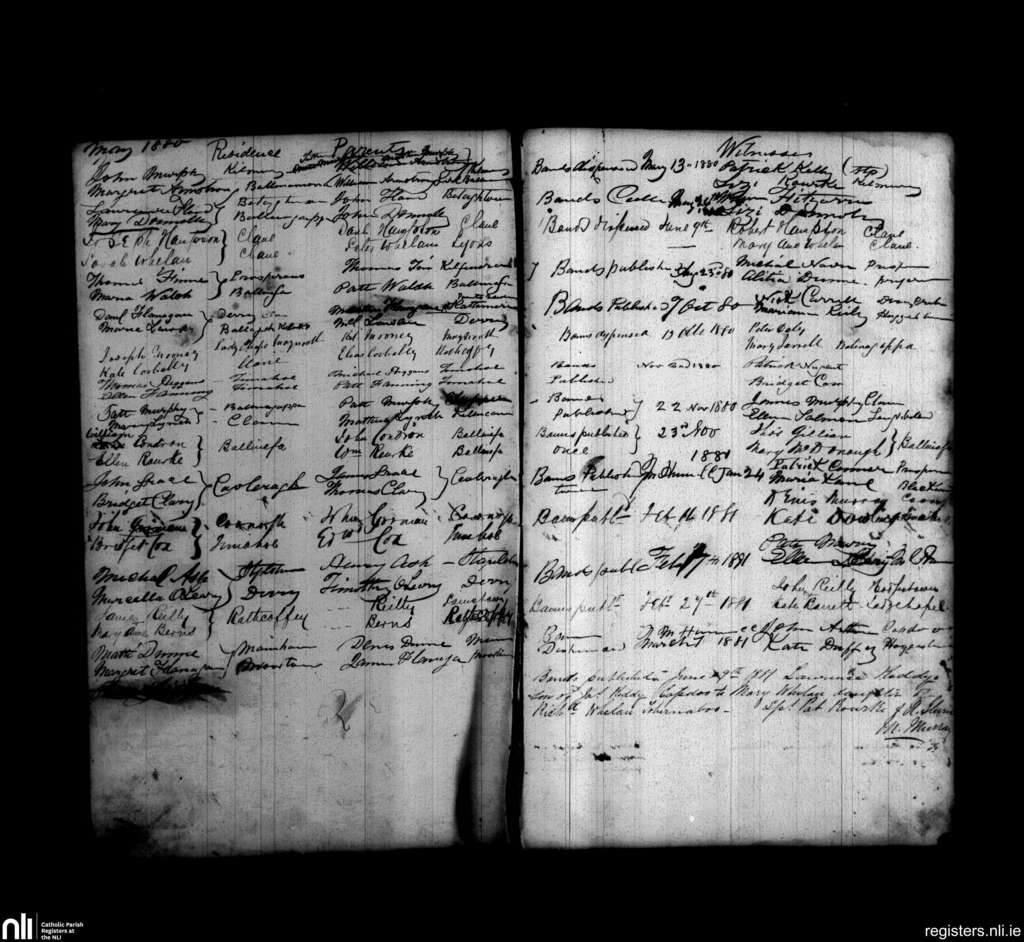 Clane; County of Kildare; Diocese of Kildare and Leighlin. Marriages, May 1880 to June 1881
