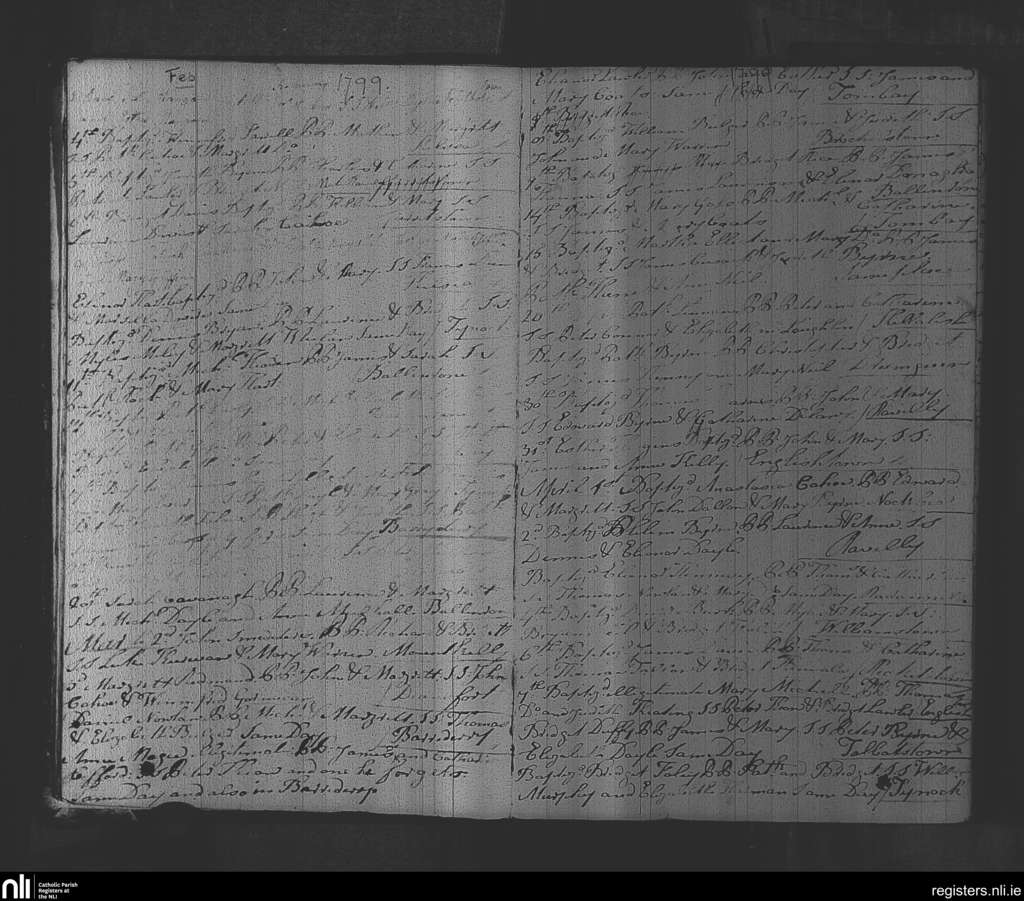 Rathvilly; County of Wicklow, Carlow; Diocese of Kildare and Leighlin. Baptisms, Feb. 1799 to Apr. 1799