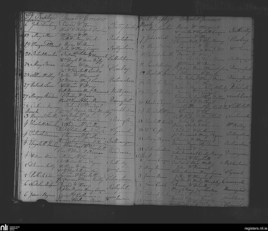 Rathvilly; County of Wicklow, Carlow; Diocese of Kildare and Leighlin. Baptisms, Feb. 1804 to Apr. 1804