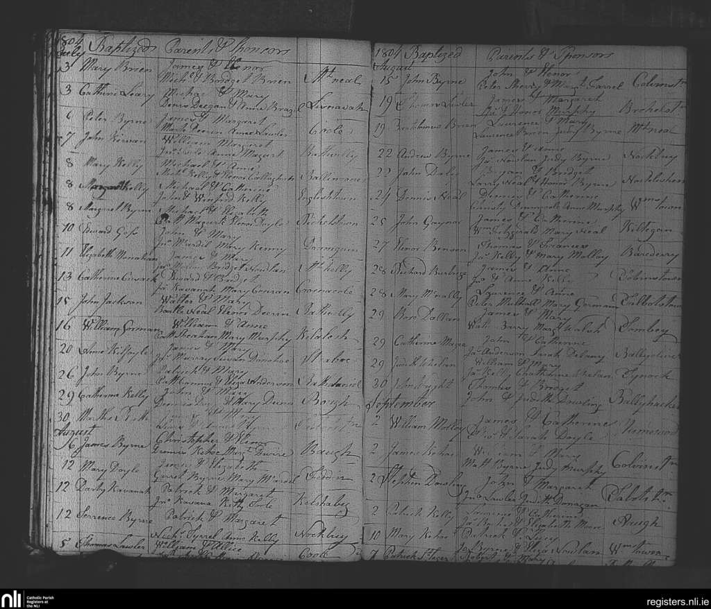 Rathvilly; County of Wicklow, Carlow; Diocese of Kildare and Leighlin. Baptisms, July 1804 to Sep. 1804