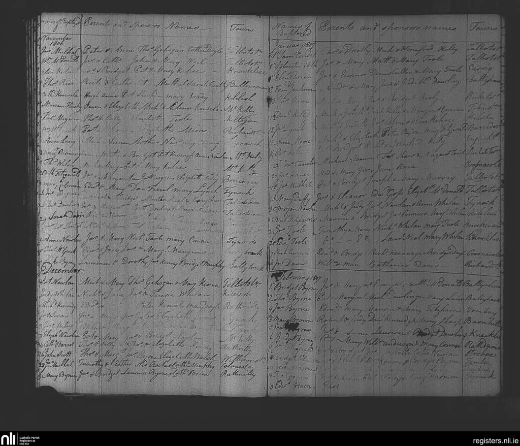 Rathvilly; County of Wicklow, Carlow; Diocese of Kildare and Leighlin. Baptisms, Nov. 1806 to Feb. 1807