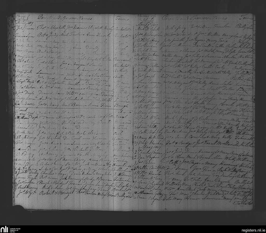 Rathvilly; County of Wicklow, Carlow; Diocese of Kildare and Leighlin. Baptisms, Mar. 1807 to May 1807