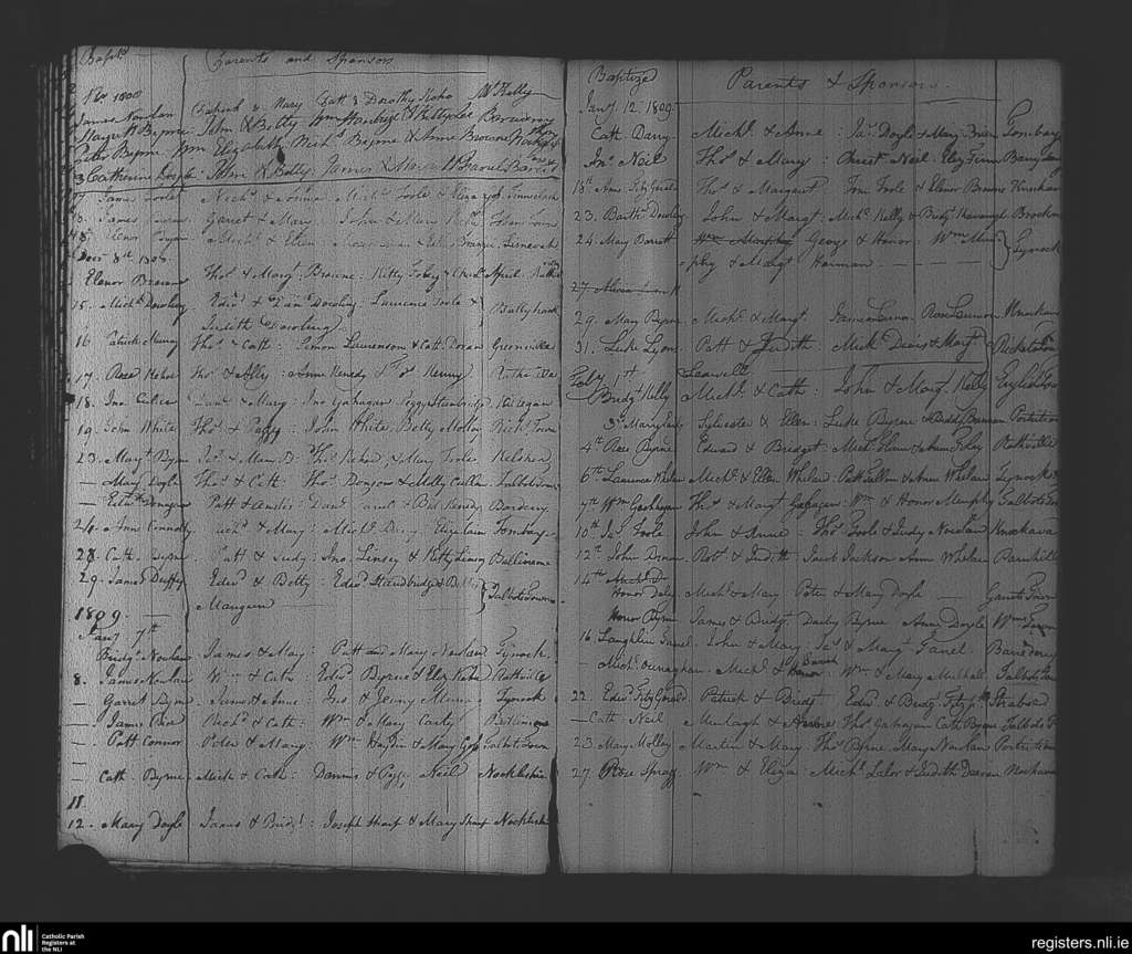 Rathvilly; County of Wicklow, Carlow; Diocese of Kildare and Leighlin. Baptisms, Nov. 1808 to Feb. 1809