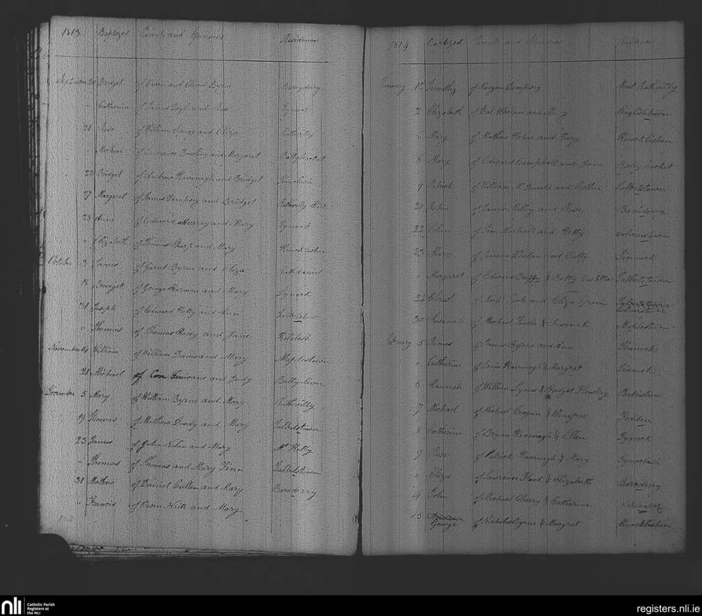 Rathvilly; County of Wicklow, Carlow; Diocese of Kildare and Leighlin. Baptisms, Sep. 1813 to Feb. 1814