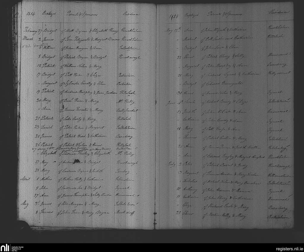 Rathvilly; County of Wicklow, Carlow; Diocese of Kildare and Leighlin. Baptisms, Feb. 1814 to July 1814