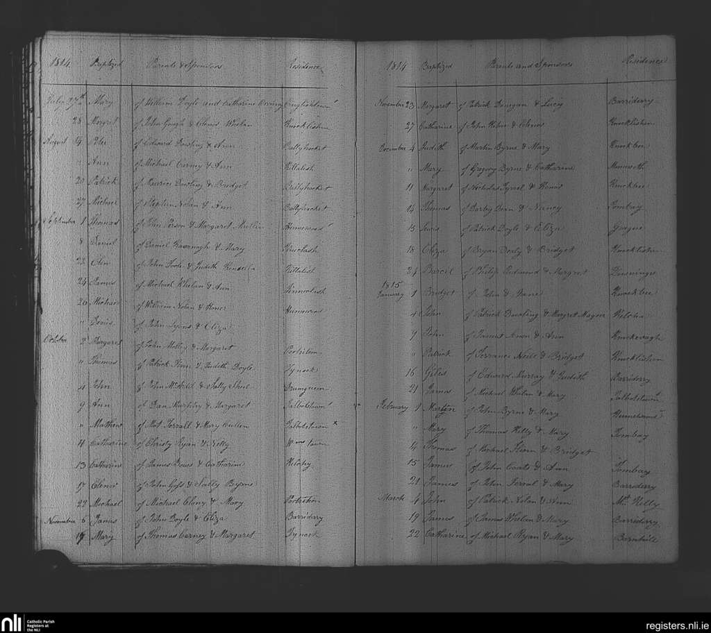 Rathvilly; County of Wicklow, Carlow; Diocese of Kildare and Leighlin. Baptisms, July 1814 to Mar. 1815