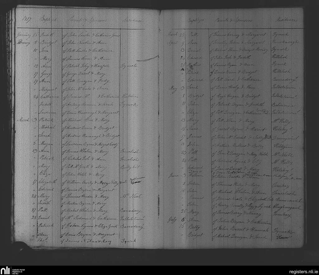 Rathvilly; County of Wicklow, Carlow; Diocese of Kildare and Leighlin. Baptisms, Jan. 1817 to July 1817
