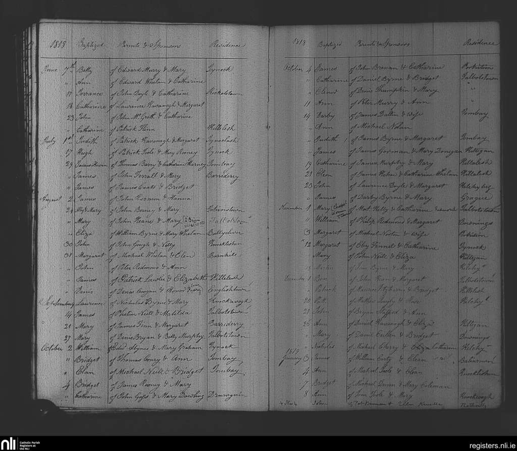Rathvilly; County of Wicklow, Carlow; Diocese of Kildare and Leighlin. Baptisms, June 1818 to Jan. 1819