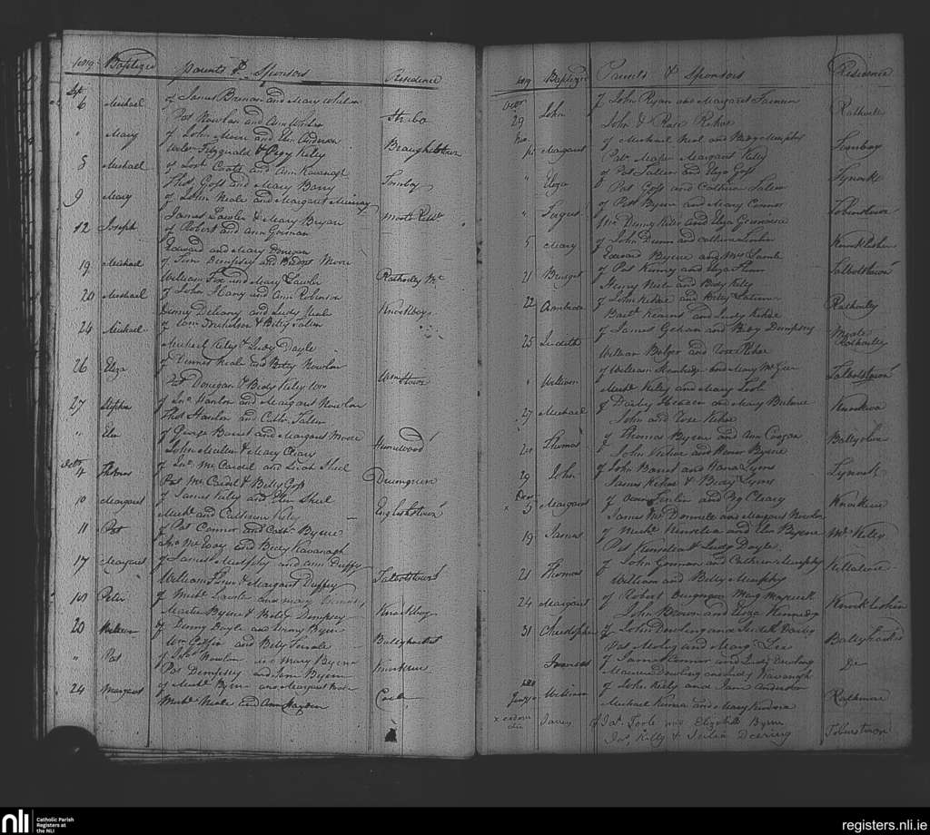 Rathvilly; County of Wicklow, Carlow; Diocese of Kildare and Leighlin. Baptisms, Sep. 1819 to Jan. 1820