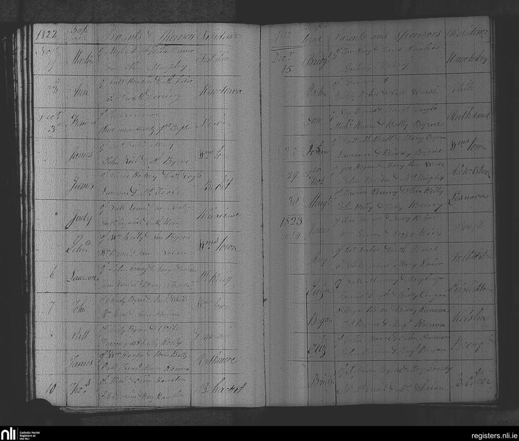 Rathvilly; County of Wicklow, Carlow; Diocese of Kildare and Leighlin. Baptisms, Nov. 1822 to Jan. 1823