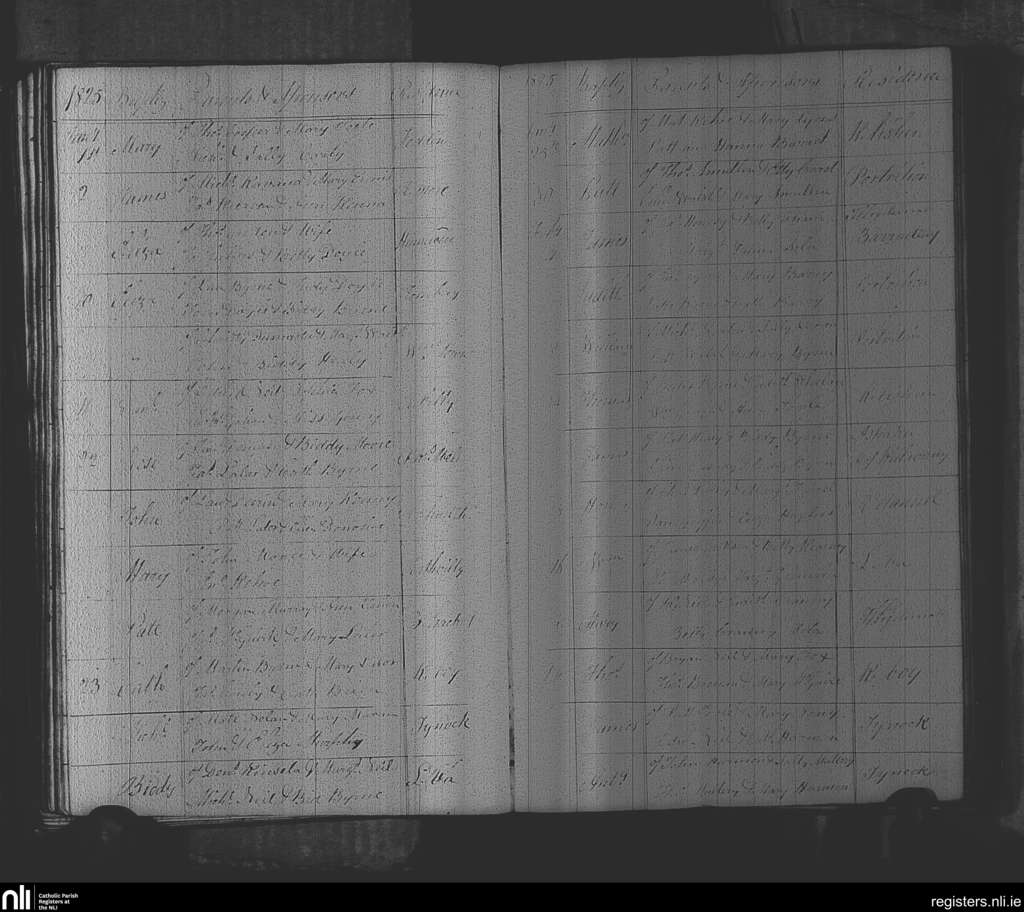 Rathvilly; County of Wicklow, Carlow; Diocese of Kildare and Leighlin. Baptisms, Jan. 1825 to Feb. 1825