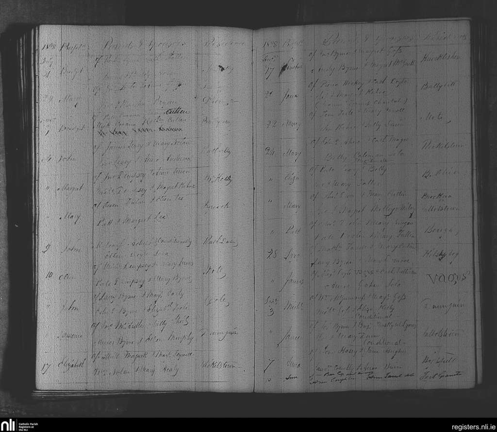 Rathvilly; County of Wicklow, Carlow; Diocese of Kildare and Leighlin. Baptisms, July 1828 to Sep. 1828