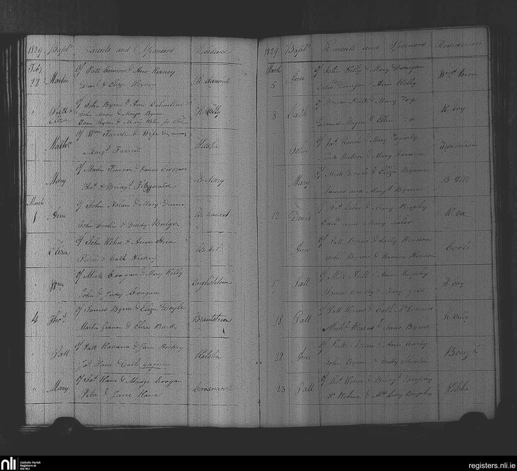 Rathvilly; County of Wicklow, Carlow; Diocese of Kildare and Leighlin. Baptisms, Feb. 1829 to Mar. 1829