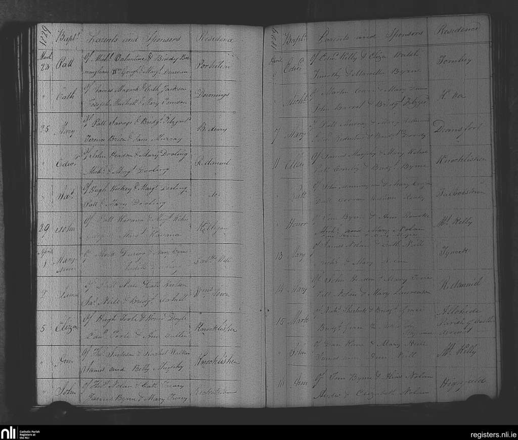Rathvilly; County of Wicklow, Carlow; Diocese of Kildare and Leighlin. Baptisms, Mar. 1829 to Apr. 1829