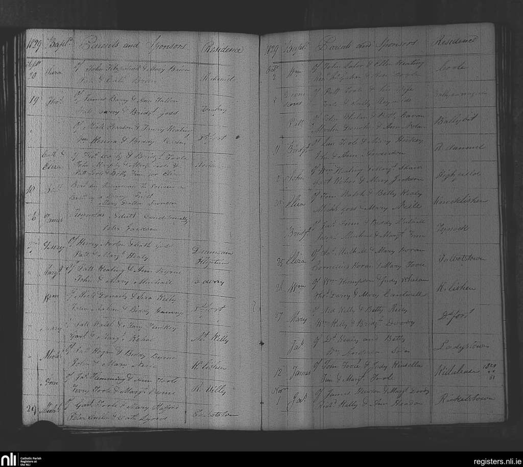Rathvilly; County of Wicklow, Carlow; Diocese of Kildare and Leighlin. Baptisms, Sep. 1829 to Nov. 1829