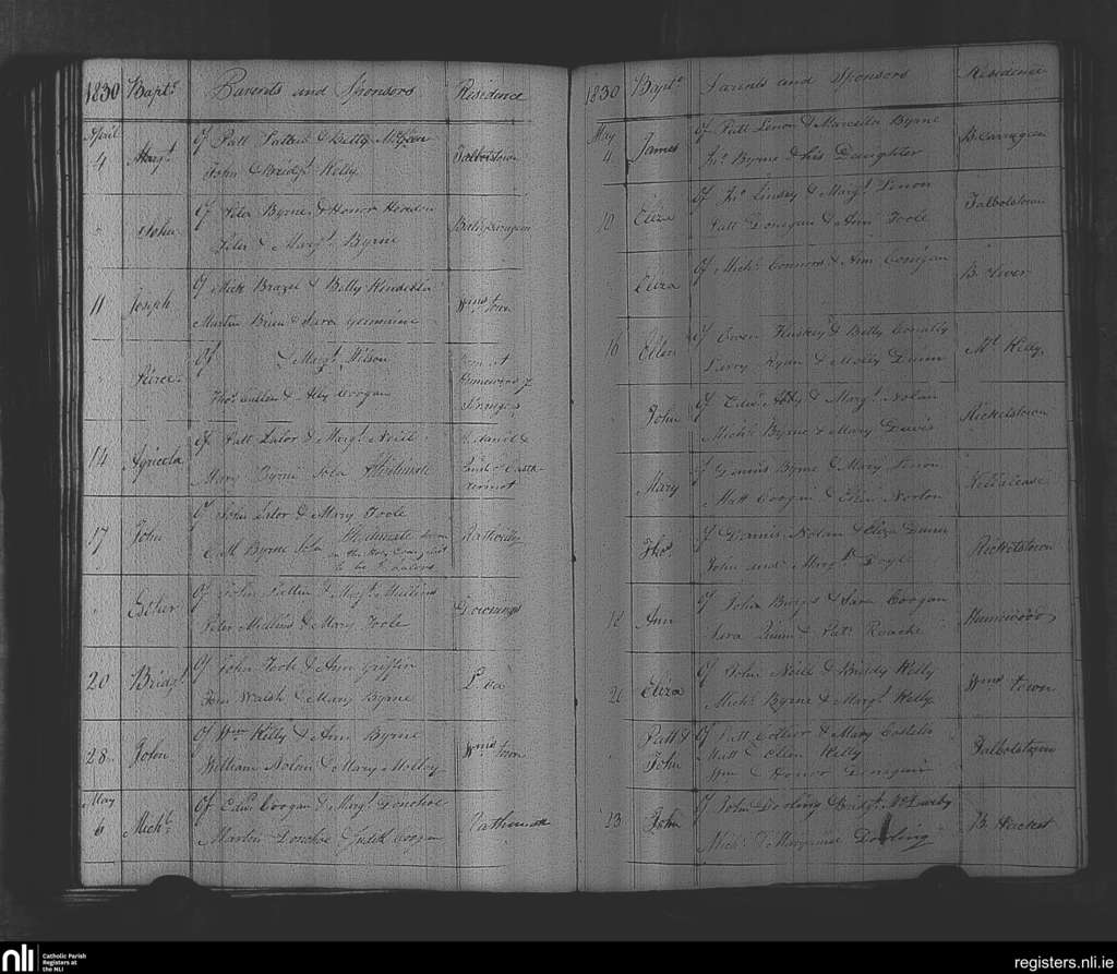 Rathvilly; County of Wicklow, Carlow; Diocese of Kildare and Leighlin. Baptisms, Apr. 1830 to May 1830