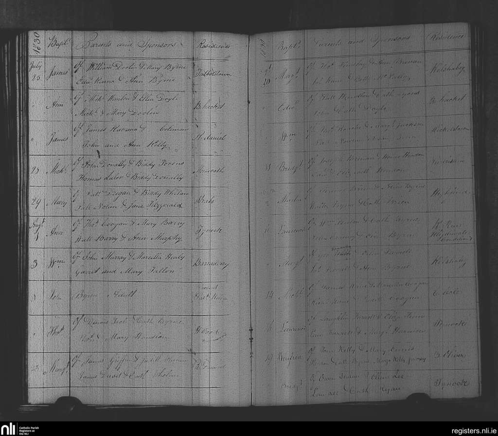 Rathvilly; County of Wicklow, Carlow; Diocese of Kildare and Leighlin. Baptisms, July 1830 to Sep. 1830