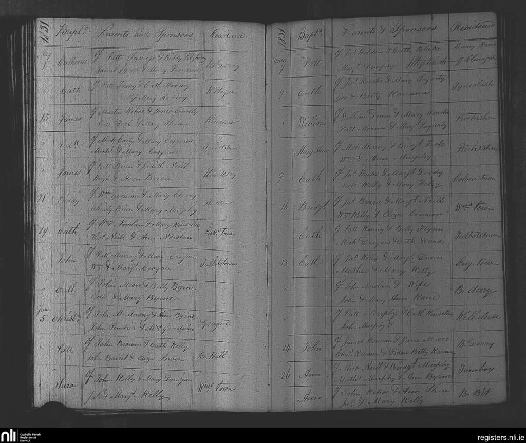 Rathvilly; County of Wicklow, Carlow; Diocese of Kildare and Leighlin. Baptisms, May 1831 to June 1831