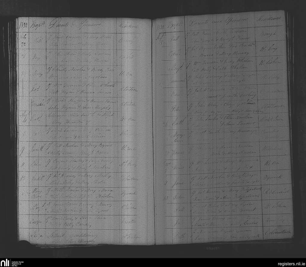 Rathvilly; County of Wicklow, Carlow; Diocese of Kildare and Leighlin. Baptisms, July 1832 to Sep. 1832