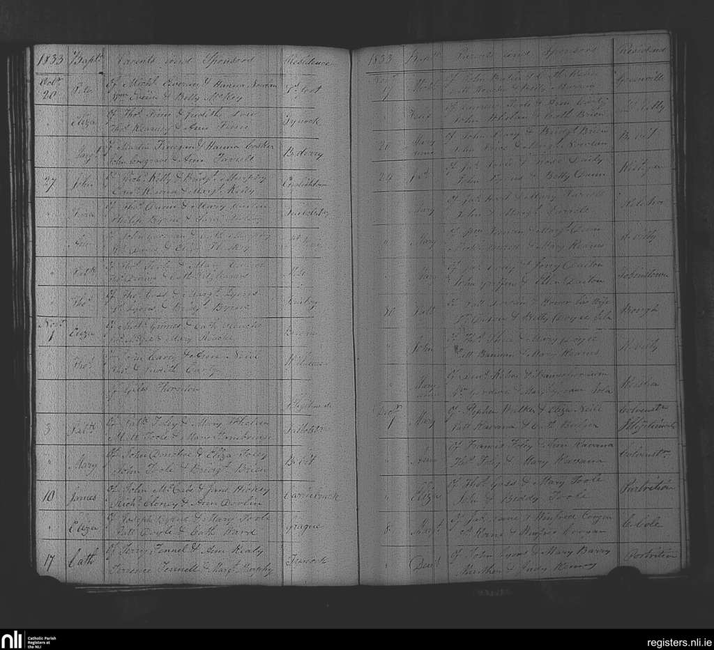 Rathvilly; County of Wicklow, Carlow; Diocese of Kildare and Leighlin. Baptisms, Oct. 1833 to Dec. 1833