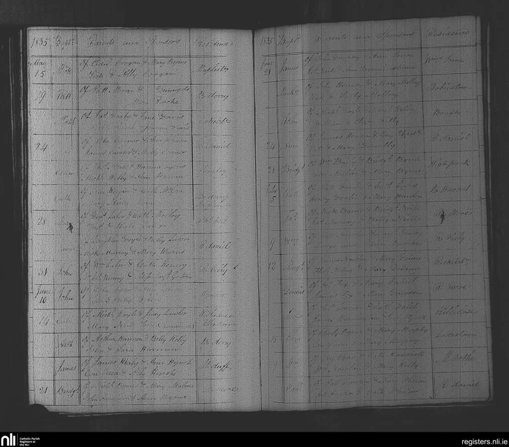 Rathvilly; County of Wicklow, Carlow; Diocese of Kildare and Leighlin. Baptisms, May 1835 to July 1835