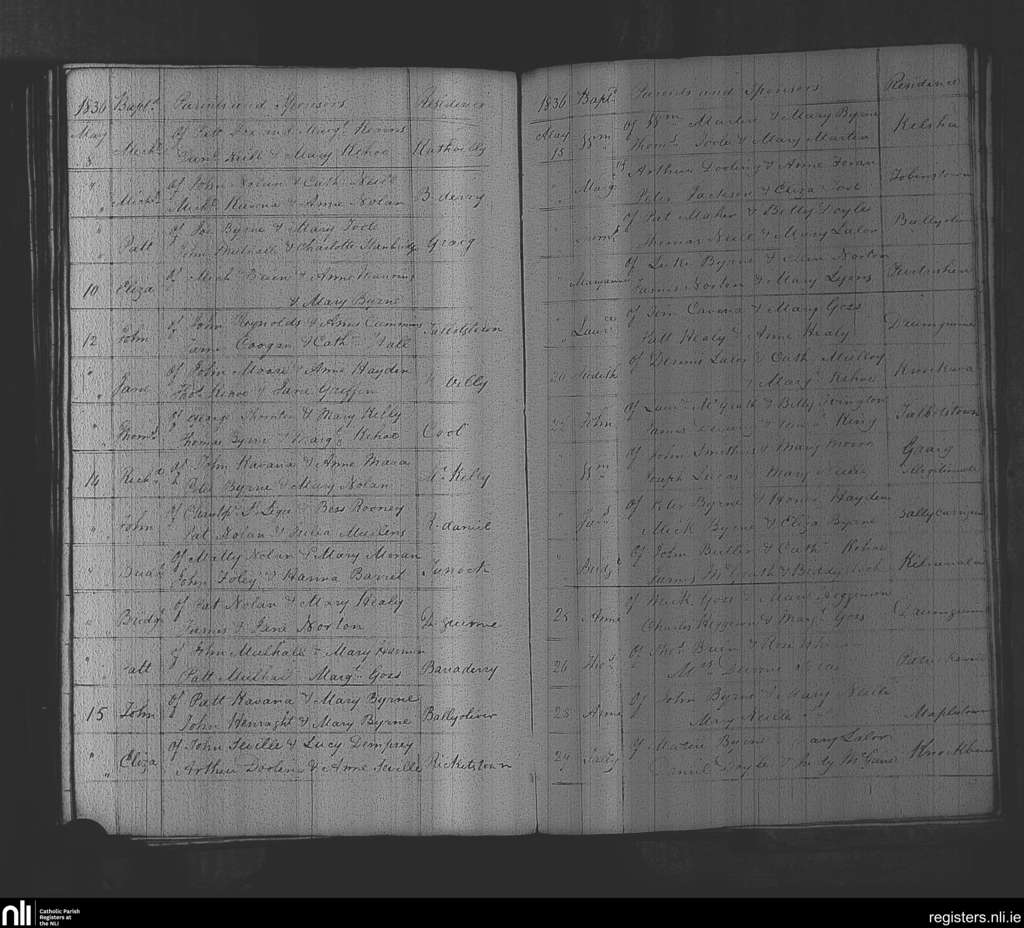 Rathvilly; County of Wicklow, Carlow; Diocese of Kildare and Leighlin. Baptisms, May 1836