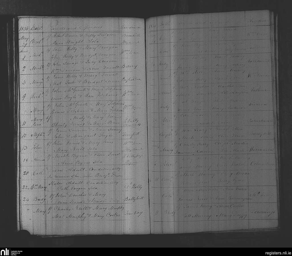 Rathvilly; County of Wicklow, Carlow; Diocese of Kildare and Leighlin. Baptisms, May 1836 to July 1836