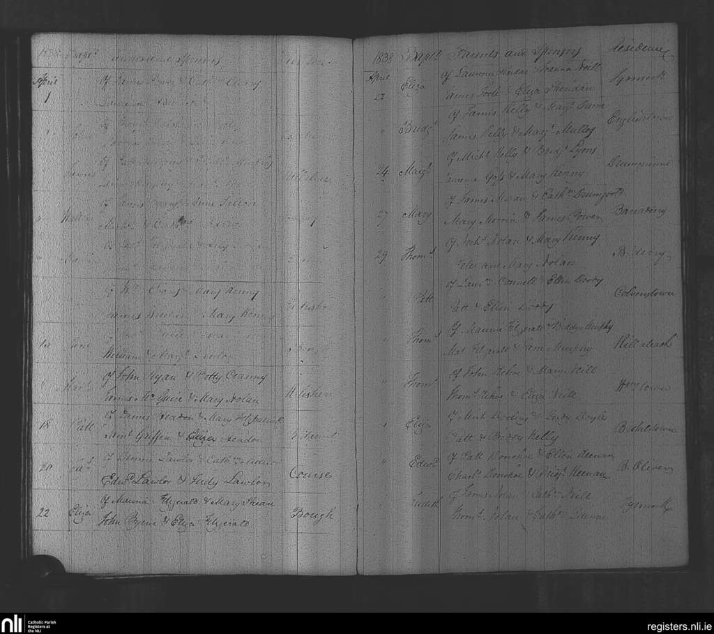 Rathvilly; County of Wicklow, Carlow; Diocese of Kildare and Leighlin. Baptisms, Apr. 1838
