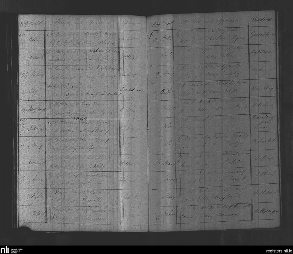 Rathvilly; County of Wicklow, Carlow; Diocese of Kildare and Leighlin. Baptisms, Dec. 1839 to Jan. 1840
