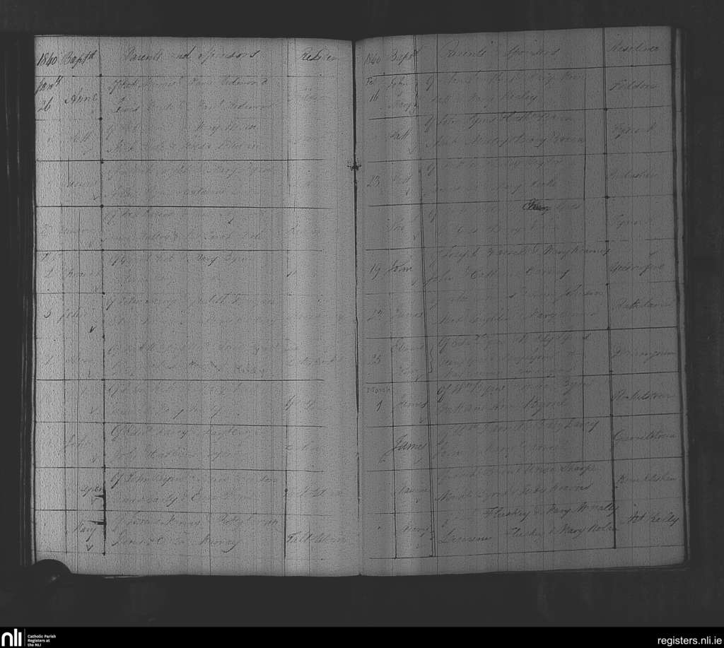 Rathvilly; County of Wicklow, Carlow; Diocese of Kildare and Leighlin. Baptisms, Jan. 1840 to Mar. 1840