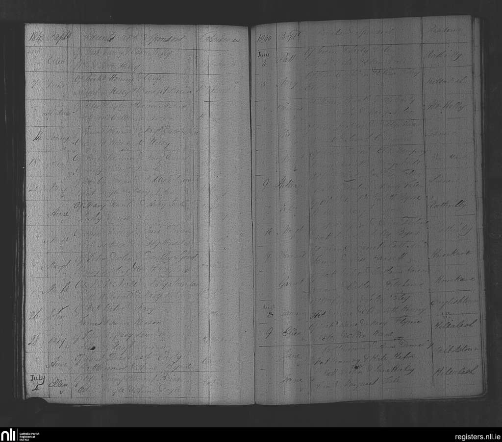 Rathvilly; County of Wicklow, Carlow; Diocese of Kildare and Leighlin. Baptisms, June 1840 to Aug. 1840