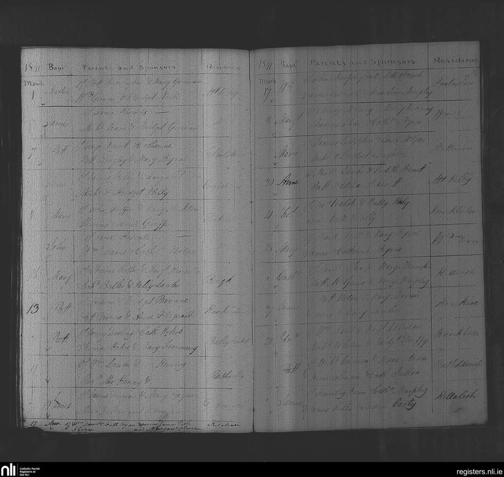 Rathvilly; County of Wicklow, Carlow; Diocese of Kildare and Leighlin. Baptisms, Mar. 1841