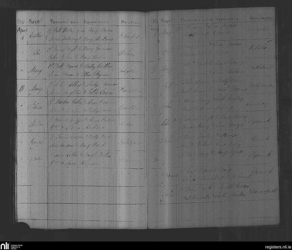 Rathvilly; County of Wicklow, Carlow; Diocese of Kildare and Leighlin. Baptisms, Apr. 1841 to May 1841