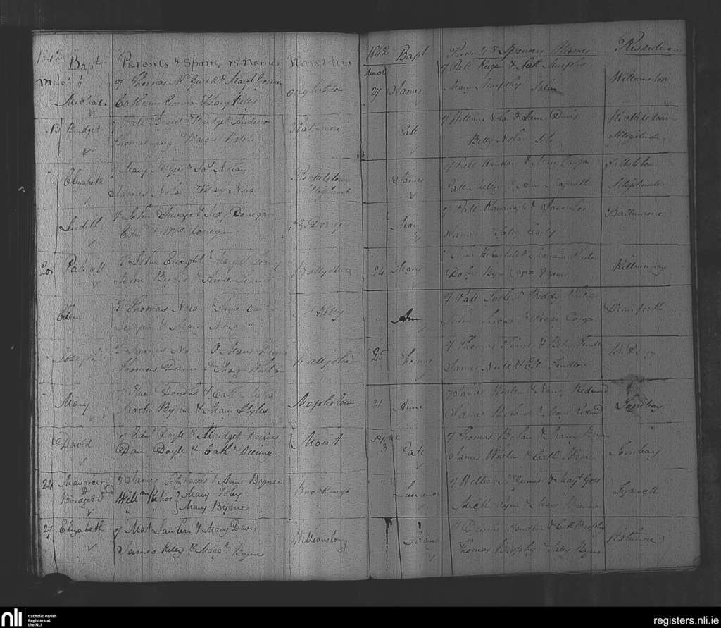 Rathvilly; County of Wicklow, Carlow; Diocese of Kildare and Leighlin. Baptisms, Mar. 1842 to Apr. 1842