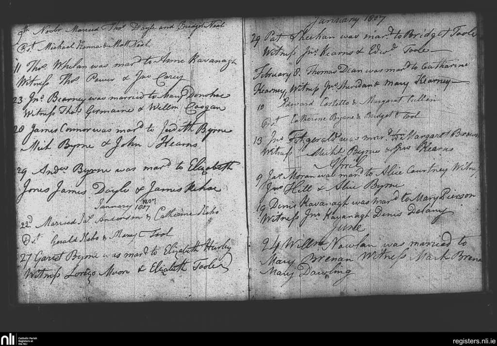 Rathvilly; County of Wicklow, Carlow; Diocese of Kildare and Leighlin. Marriages, Oct. 1806 to June 1807