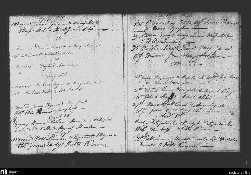 Rathvilly; County of Wicklow, Carlow; Diocese of Kildare and Leighlin. Marriages, July 1811 to Nov. 1811