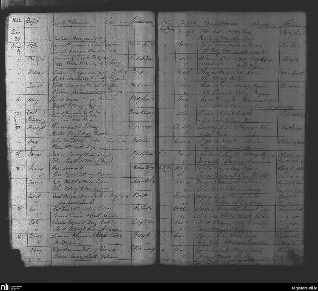 Rathvilly; County of Carlow, Wicklow; Diocese of Kildare and Leighlin. Baptisms, June 1842 to Oct. 1842