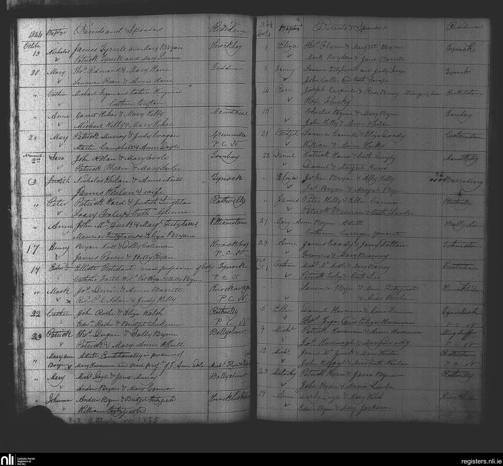 Rathvilly; County of Carlow, Wicklow; Diocese of Kildare and Leighlin. Baptisms, Oct. 1844 to Jan. 1845