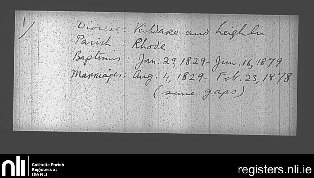 Rhode; County of Offaly; Diocese of Kildare and Leighlin. Baptisms, Marriages