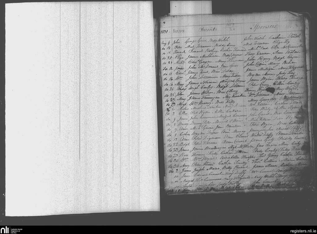Rhode; County of Offaly; Diocese of Kildare and Leighlin. Baptisms, Aug. 1831 to Oct. 1831