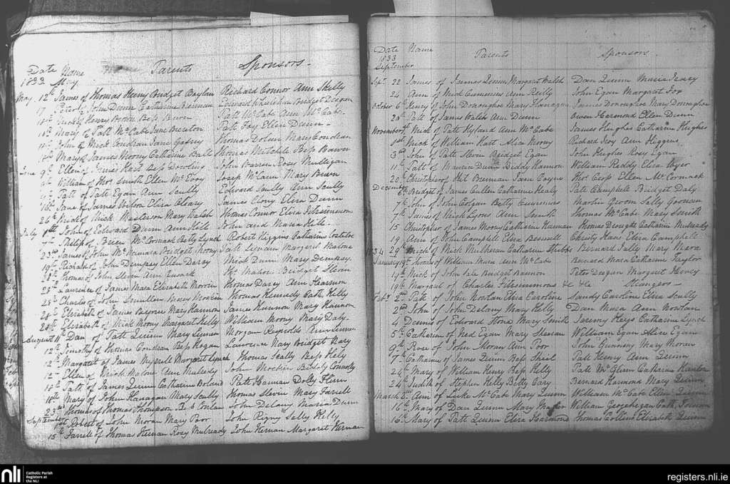 Rhode; County of Offaly; Diocese of Kildare and Leighlin. Baptisms, May 1833 to Mar. 1834