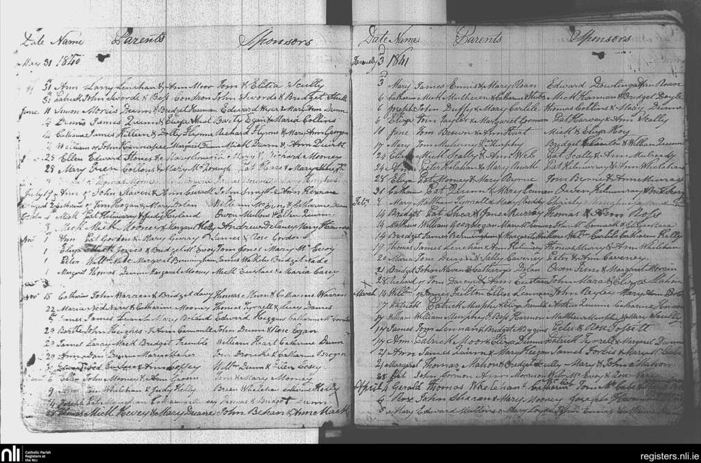 Rhode; County of Offaly; Diocese of Kildare and Leighlin. Baptisms, May 1840 to Apr. 1841